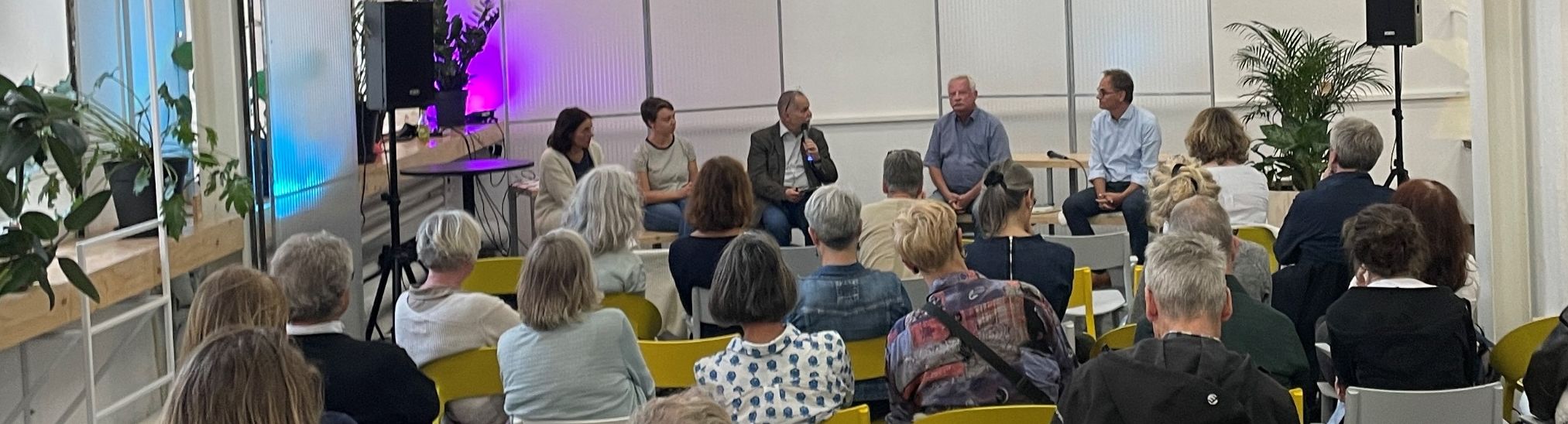 Das aus allen Generationen und gesellschaftlichen Kontexten gemischte Publikum diskutierte bisweilen intensiv mit den Impulsgebenden. Müssen der Einzelne, gesellschaftlichen Gruppen, Industrie oder Bundespolitiker mehr tun? Können Probleme, die durch die Gemeinschaft entstanden sind, überhaupt von den Einzelnen gelöst werden? Es wurde vor Pauschalisierungen „die Politik“ und die „Aktivisten“ gewarnt. Das bringe nicht weiter im gemeinsamen Ziel. Zum Beispiel könnten sich mehr Initiativen in den Städten dafür einsetzen, dass wir eine sorgende Gemeinschaft werden und enger zusammenrücken. „Wir müssen auf Konsum verzichten, er macht nicht glücklich“, sagte eine Teilnehmerin. Ein anderer Zuschauer fragte, was den Menschen für ihren Verzicht geboten werden kann. Es wurde mehrfach betont, dass unser aktuelle Lebensstandard die Freiheit der nächsten Generation einschränkt.