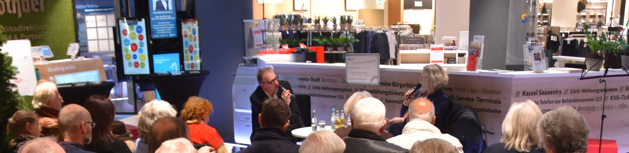 Die Veranstaltung ist eine Kooperation der Citypastoral, Kassel Marketing und der GALERIA. Kerstin Leitschuh redet mit interessanten Personen aus Gesellschaft, Kultur oder Politik über Werte und Welt, Hoffnungen und Haltungen, Glück und Gott.