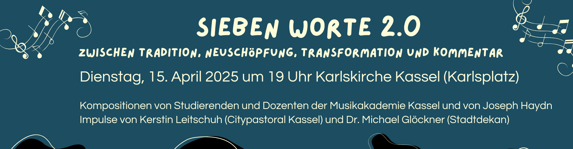Der Evangelische Stadtkirchenkreis Kassel und die Katholische Citypastoral, in Zusammenarbeit mit der Musikakademie der Stadt Kassel „Louis Spohr“, laden am Dienstag, 15. April 2025, um 19 Uhr zur Veranstaltung "7 Worte 2.0" in die Karlskirche ein.